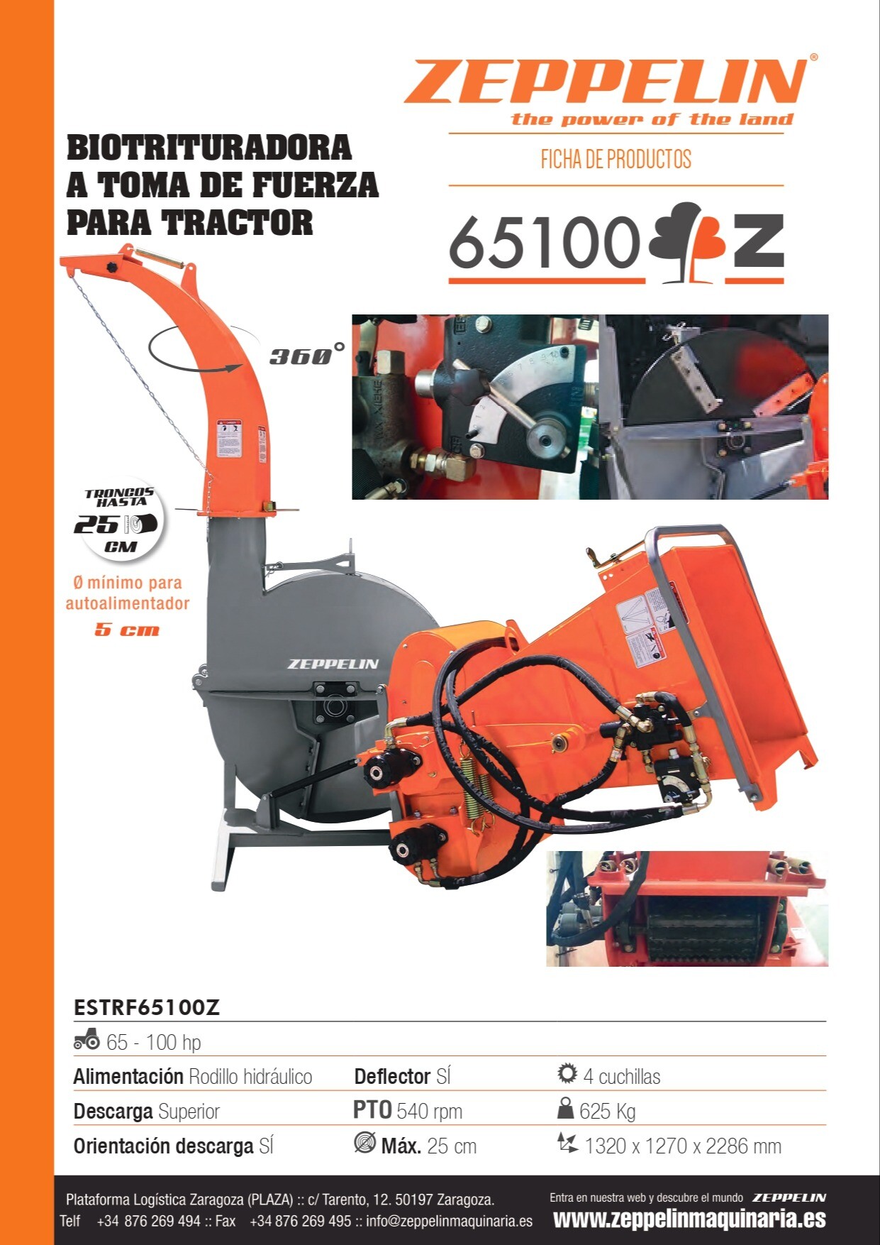 CHIPEADORAS BIOTRITURADORAS 65100 TOMA DE FUERZA HIDRÁULICA 25 Cm