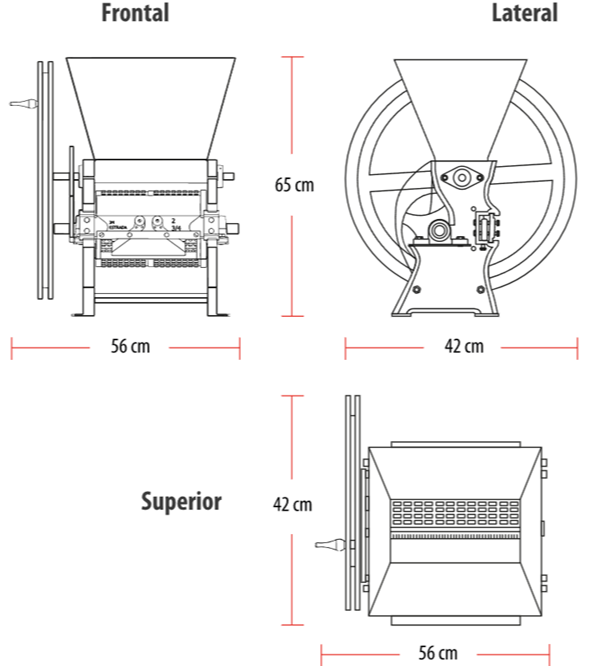 La Despulpadora Nº 2¾ cuenta con el cilindro, pechero, cureñas, engrane, polea, piñones y chapetas son fabricados en hierro colado, inmunes a la corrosión. Tolva, guarda de pulpa y babero en acero inoxidable. Cumple con norma ICONTEC 2090. El pechero es torneado con ajuste perfecto y cuenta con sistema de graduación (con ajuste de canal independiente para la versión de pechero graduable), transmisión por piñones undidos y fresados, completamente silenciosas y precisas o sistema de sproket (piñón y cadena), sus cureñas cerradas evitan la fuga de pulpa. Únicas con chumaceras de flanche en el eje del alimentador y el eje del cilindro.