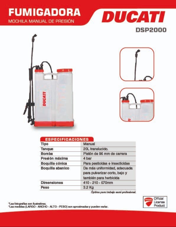 Fumigadora de espalda de 20 Litros de accionamiento manual, ideal para trabajos de bajo presupuesto, muy utilizadas en labores de jardinería por su tamaño compacto y facilidad para su limpieza y transporte.