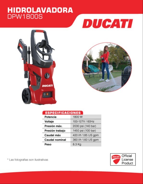 La DPW1800S es la hidrolavadora balanceada entre potencia y precio. Puede estar prendida continuamente durante 35 minutos, hasta dejarla nuevamente en reposo.