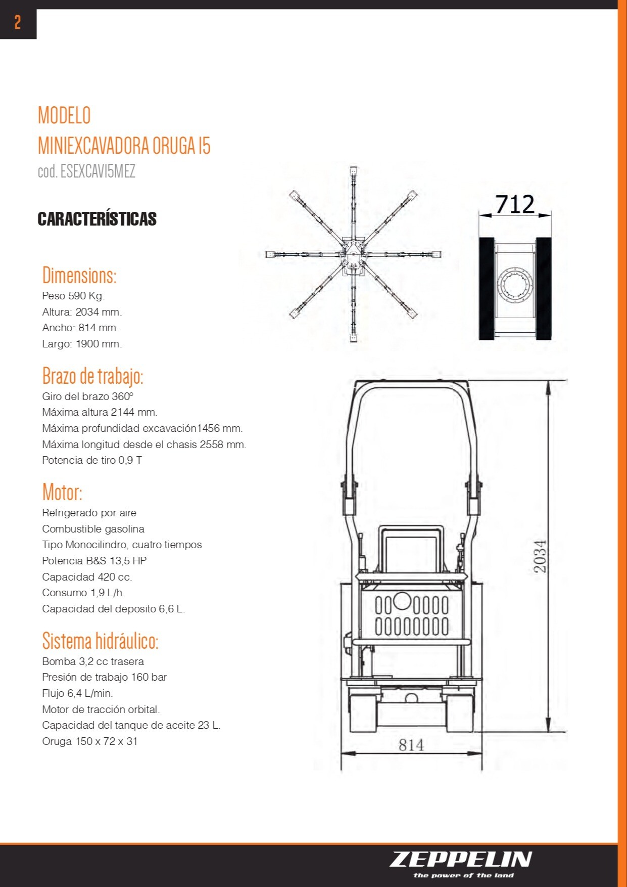 MINI EXCAVADORA HIDRÁULICA 13.5 HP