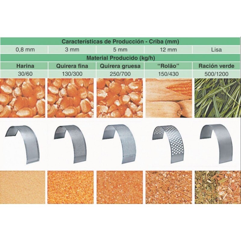 | Hasta 430 Kilos hora Moliendo granos secos | |