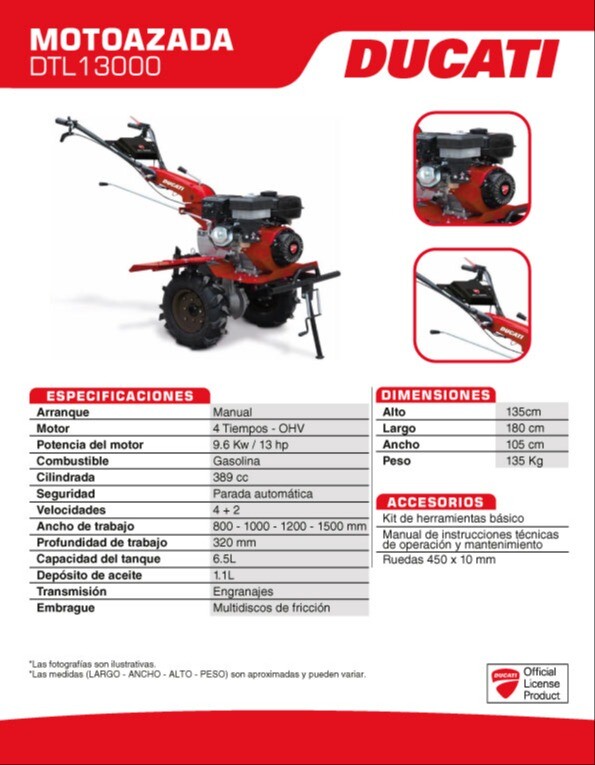 Su potente motor de 13 hp permite hacer trabajos agrícolas de dificultad media alta asegurando un mantenimiento fácil y durable. Mecanízate ya con las motoazadas y motocultores DUCATI.