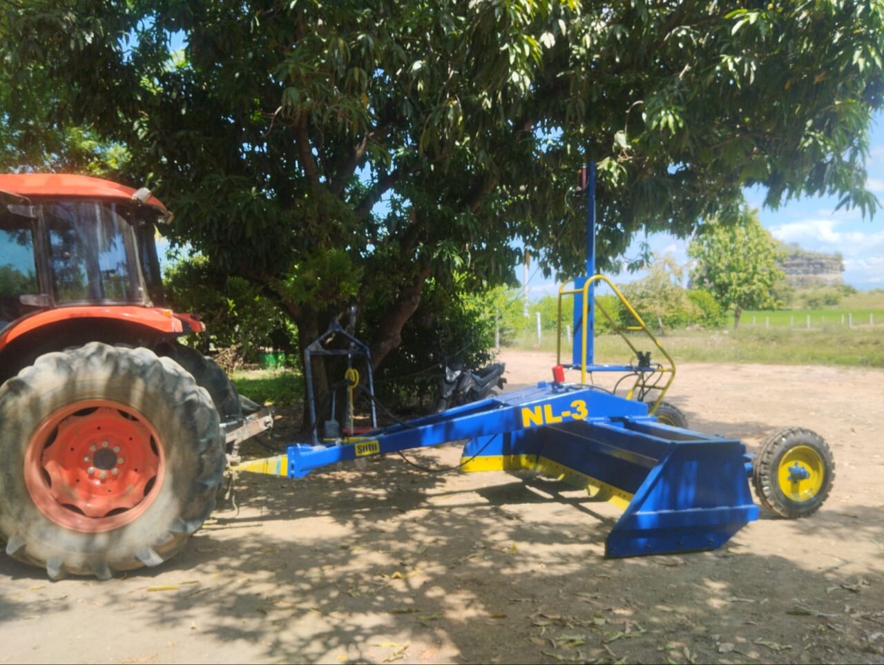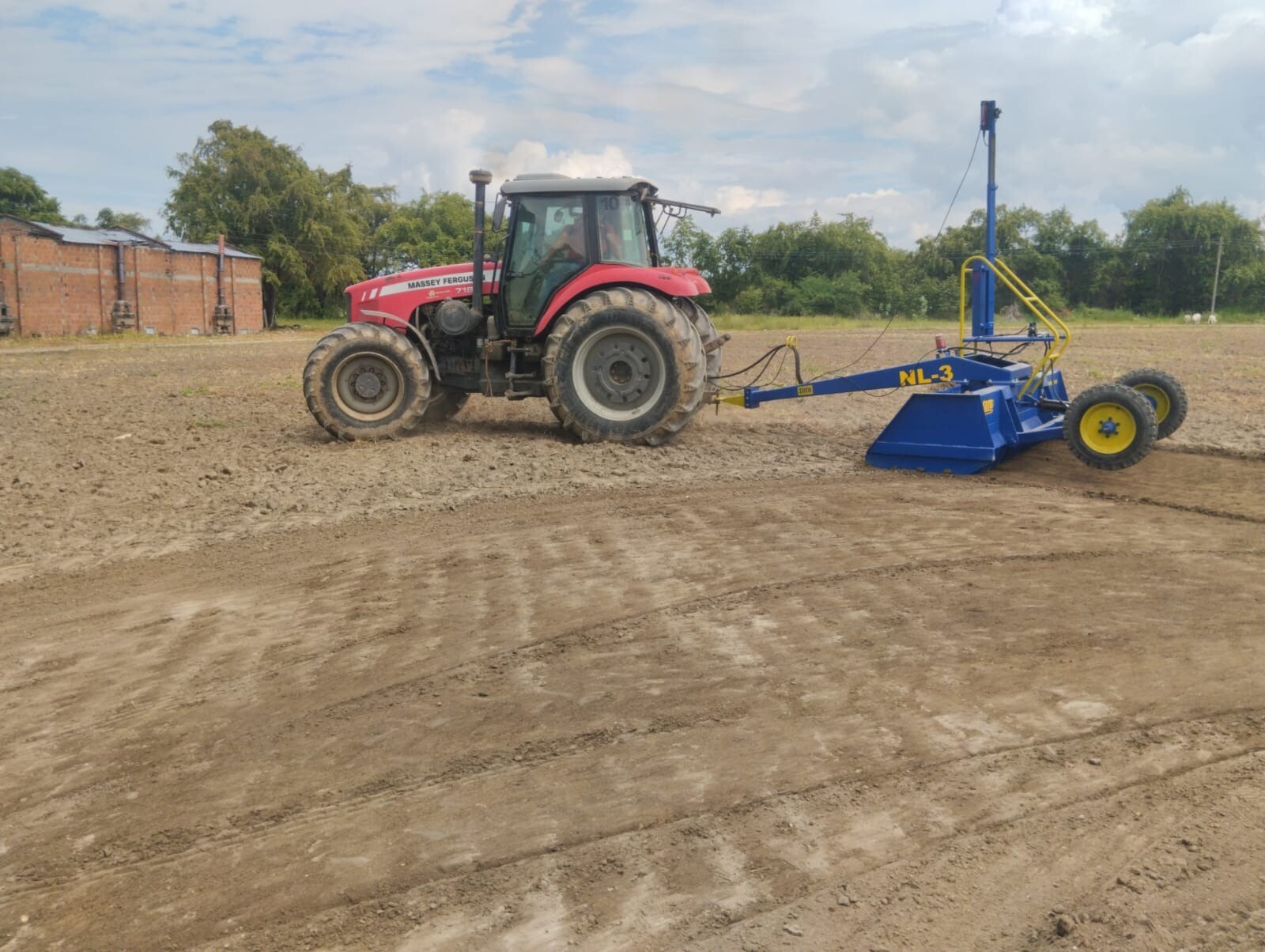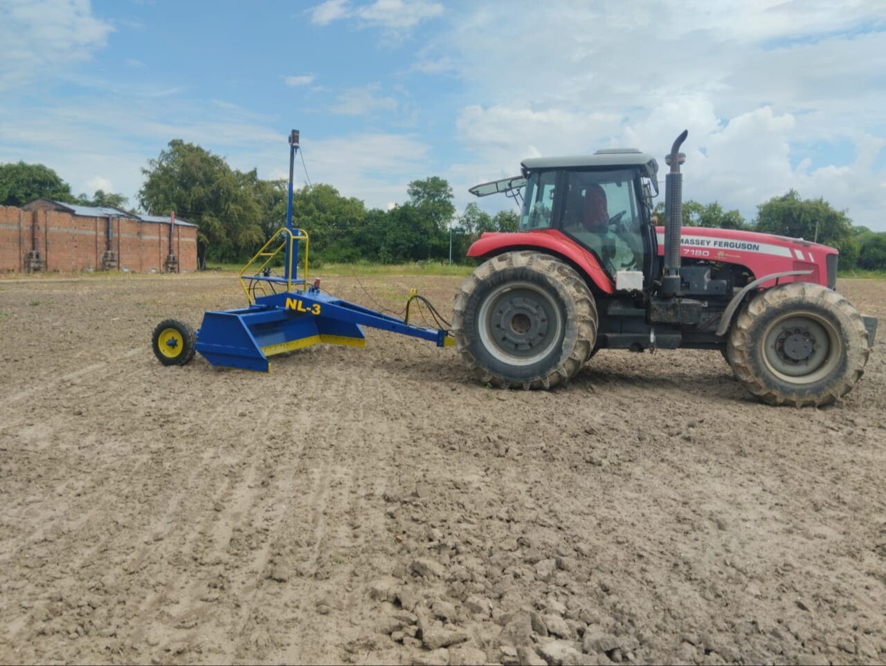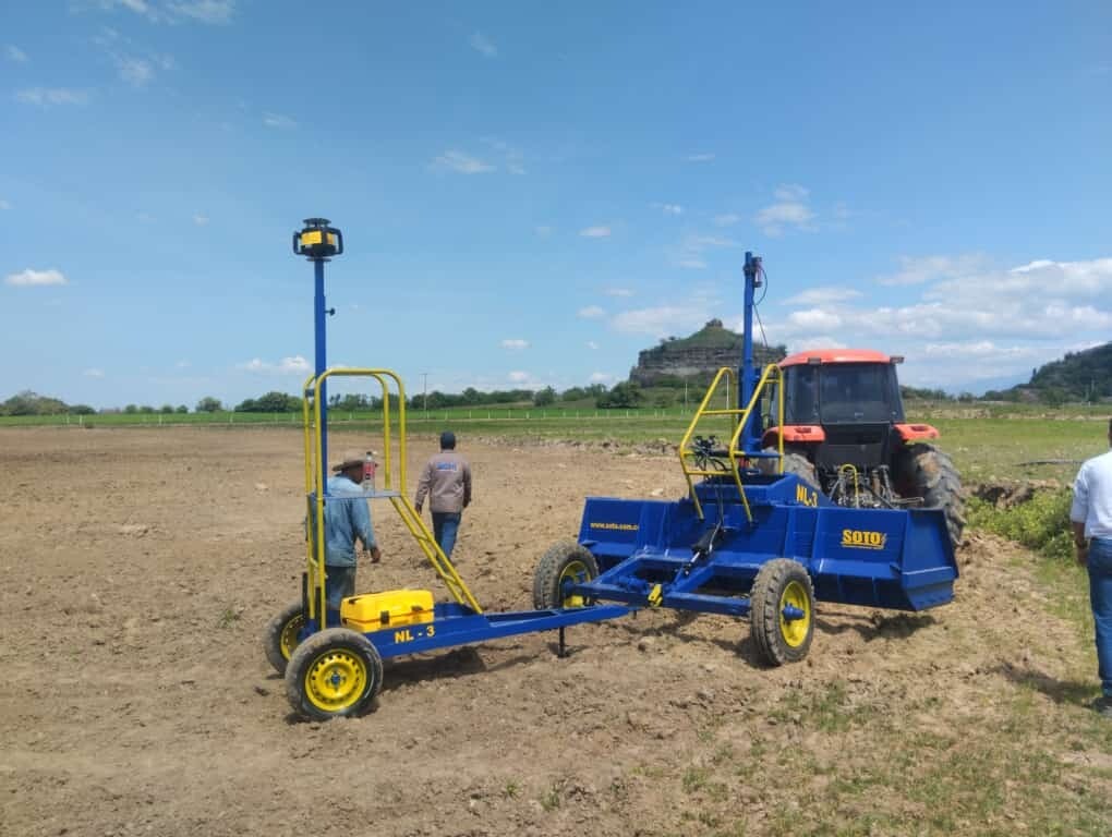 Este se compone de: un carro principal (unidad de potencia, eje y cuchillas) carro auxiliar (mástil, escalera y eje) que transporta la señal del sistema laser y cuenta con un sistema de enganche al tractor que puede ser operado por una sola persona de manera rápida sin necesidad de desensamblar el conjunto. Para trabajar en pendientes fijas o variables dependiendo de la topografía original del terreno, obteniendo películas mínimas de agua especialmente en el cultivo del arroz.