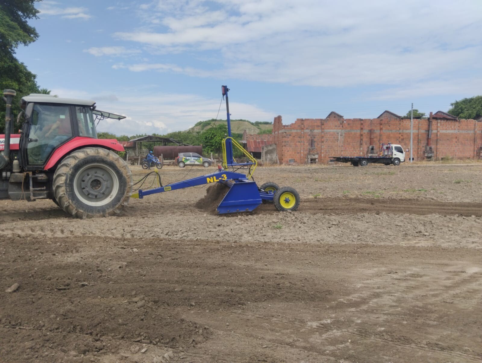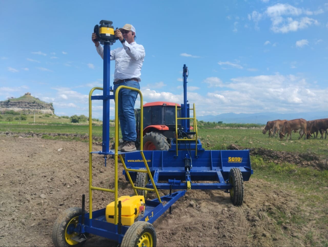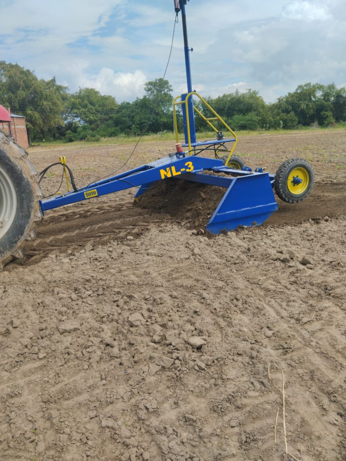 Este se compone de: un carro principal (unidad de potencia, eje y cuchillas) carro auxiliar (mástil, escalera y eje) que transporta la señal del sistema laser y cuenta con un sistema de enganche al tractor que puede ser operado por una sola persona de manera rápida sin necesidad de desensamblar el conjunto. Para trabajar en pendientes fijas o variables dependiendo de la topografía original del terreno, obteniendo películas mínimas de agua especialmente en el cultivo del arroz.