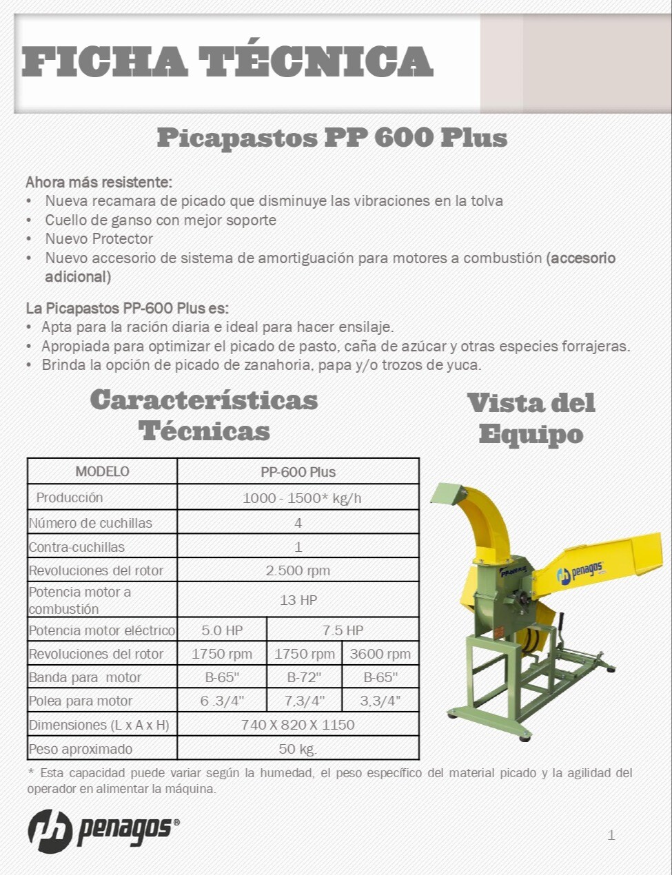 | Producción de forrajes kg/h | 1000 - 1500 kg/h |