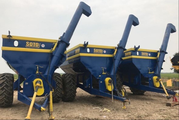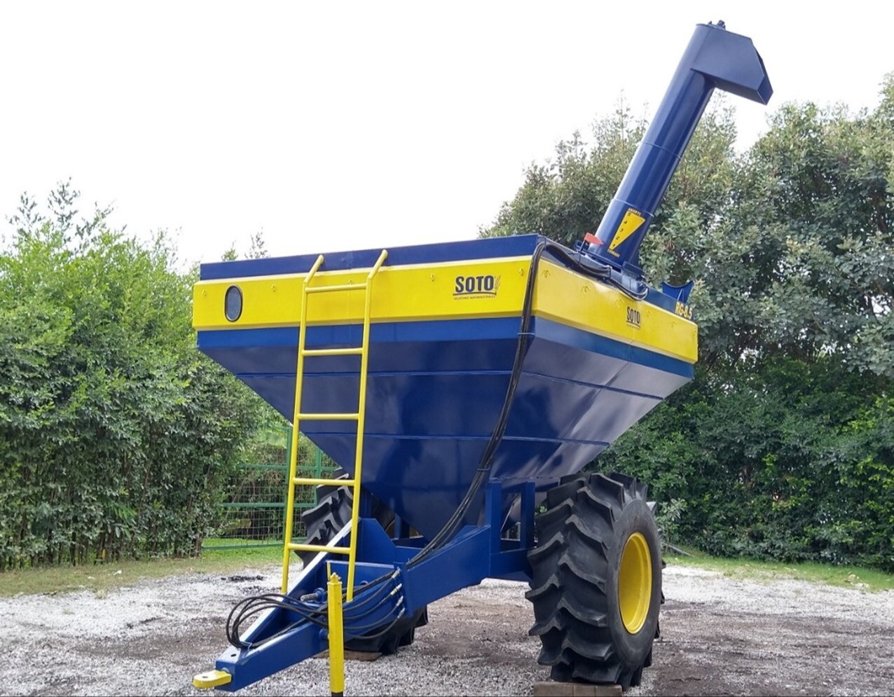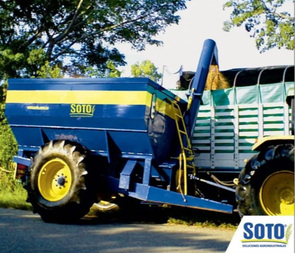 y se facilita la descarga de la cosecha. Para descargas elevadas, se utiliza un sistema de sinfines que impulsa
