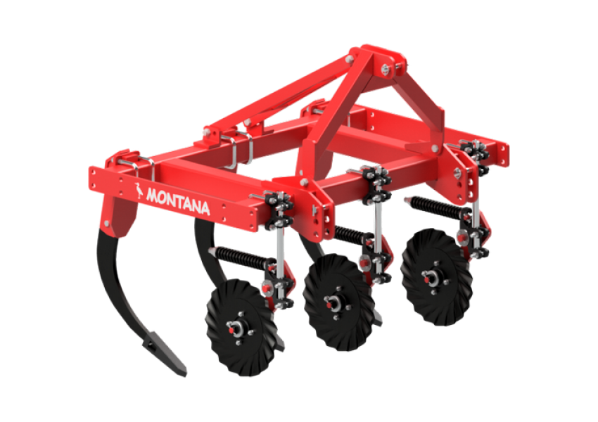 Diseñado para cortar y entallar el suelo, su construcción es fuerte y robusta, compuesta por un marco principal, discos planos delanteros sujetados por un eje y ajustados al marco, (cinceles curvos), fabricados en acero inyectado, con puntas de acero recambiables; acopladas al bastidor, sus propiedades mecánicas es ideal para esta aplicación. Provisto de discos planos para cortar y abrir la vía al cincel, con un sistema retráctil de resorte diseñado para absorber las irregularidades del suelo permitiendo una mayor profundidad de penetración. El marco principal tiene un diseño sumamente fuerte y resistente. Los cinceles son fabricados en hierro nodular, material que por sus propiedades mecánicas es ideal para esta aplicación. Las puntas recambiables están fabricadas en acero de alta dureza y resistencia al desgaste.