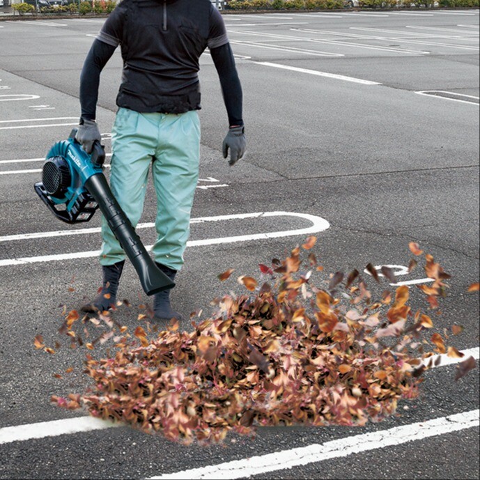 - Soplador aspirador con función de triturado, los desechos recogidos se trituran antes de depositarse en la bolsa