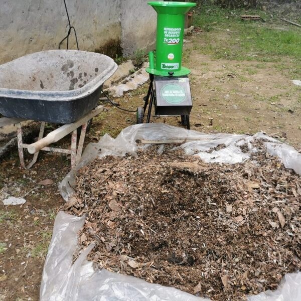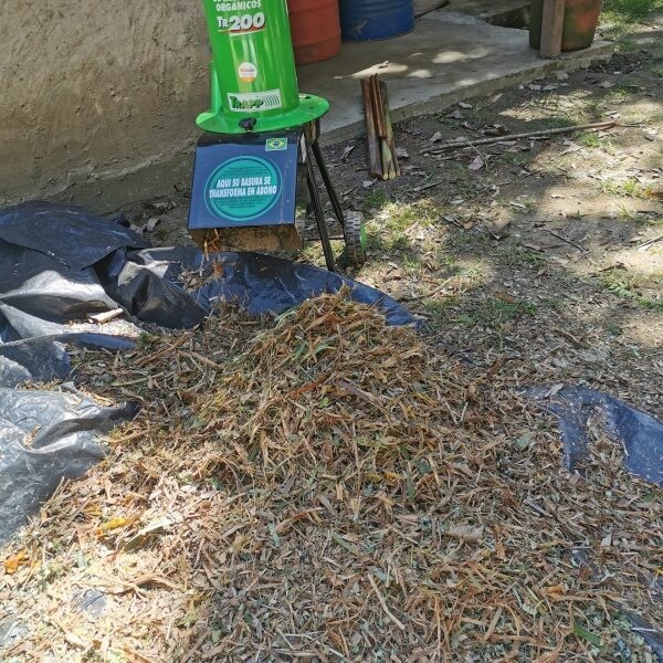 Tritura residuos orgánicos como restos de frutas, verduras, café, pequeños huesos, forraje, pasto cortado, cáscaras de huevo, sobras de comida, madera mohosa o canastas de paja que pueden ser utilizados para hacer compostaje y producir abono natural.