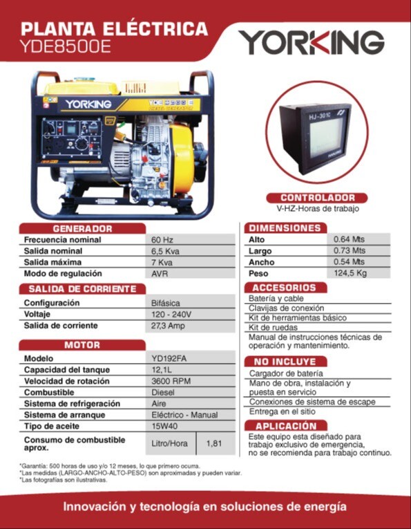 Incluye accesorios que lo hacen muy funcional , batería y cable, clavijas de conexión, KIT de ruedas, KIT de herramientas básico; elementos para facilitar su uso y mantenimiento.