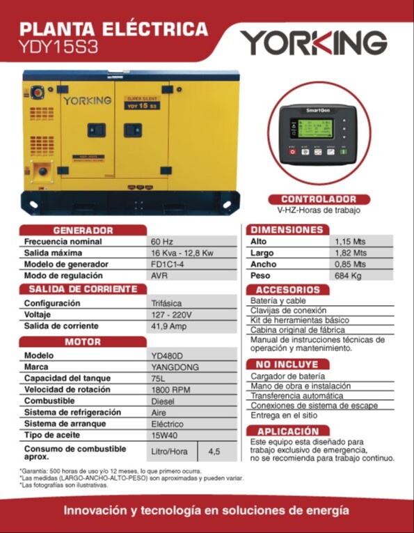 - YDY17S3 PLANTA ELÉCTRICA YORKING 12 KW DIESEL